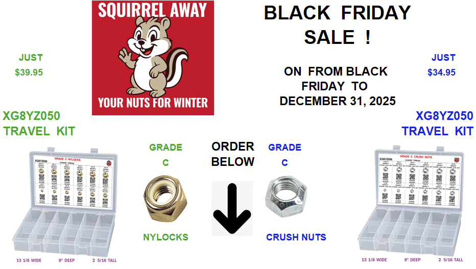 XG8CZ050 GRADE C CRUSH NUT TRAVEL KIT $34.95