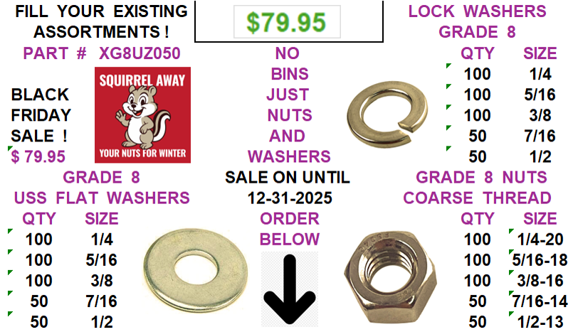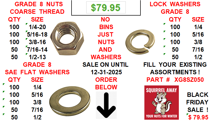XG8YZ025 GRADE C NYLOCKS COARSE AND FINE THREAD $119.95